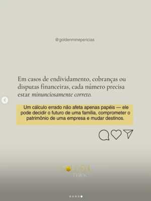 A Golden Mine é referência em perícias contábeis. Nossa expertise está em traduzir dados técnicos com precisão e clareza, oferecendo suporte contábil sólido e estratégico para decisões judiciais mais justas.